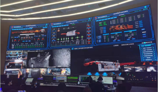 突破掘錨一體機(jī)高精度導(dǎo)航、關(guān)鍵位置自主檢測(cè)、遠(yuǎn)程多機(jī)協(xié)同等難題,并通過(guò)萬(wàn)兆網(wǎng)絡(luò)系統(tǒng)、視頻監(jiān)控系統(tǒng)、組合導(dǎo)航系統(tǒng)、多機(jī)協(xié)同控制系統(tǒng)實(shí)現(xiàn)了遠(yuǎn)程多機(jī)協(xié)同、掘錨一體機(jī)三維姿態(tài)監(jiān)測(cè),自動(dòng)導(dǎo)航及掘錨機(jī)跑偏預(yù)警,實(shí)現(xiàn)了掘錨一體機(jī)整機(jī)工況參數(shù)監(jiān)測(cè)、工作面視頻監(jiān)控、掘錨一體機(jī)關(guān)鍵位置自主檢測(cè)、人員安全預(yù)警、機(jī)身自主定位導(dǎo)航、遠(yuǎn)程可視化監(jiān)控,實(shí)現(xiàn)了巷道掘、支、運(yùn)平行作業(yè)和工作面遠(yuǎn)程監(jiān)控操作臺(tái)及地面遠(yuǎn)程集中控制。工作面由18人減至8人,掘進(jìn)工效提升至2.31m/工,創(chuàng)造了最高班進(jìn)65米,最高日進(jìn)120米,月進(jìn)2702米的歷史記錄,常態(tài)化月進(jìn)保持在2000米以上。