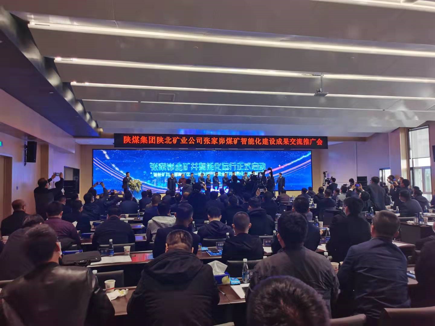 20211019日,中國(guó)煤炭工業(yè)協(xié)會(huì)組織有關(guān)專(zhuān)家在陜西省神木市召開(kāi)了“智能化煤礦巨系統(tǒng)關(guān)鍵技術(shù)裝備研發(fā)與示范應(yīng)用”科技成果鑒定及交流推廣會(huì)。中國(guó)煤炭工業(yè)協(xié)會(huì)副會(huì)長(zhǎng)、中國(guó)煤炭學(xué)會(huì)理事長(zhǎng)劉峰,中國(guó)工程院院士彭蘇萍、武強(qiáng)、王雙明、王國(guó)法、中國(guó)科學(xué)院院士何滿(mǎn)朝,北京科技大學(xué)校長(zhǎng)楊仁樹(shù),中國(guó)礦業(yè)大學(xué)校長(zhǎng)宋學(xué)鋒,中國(guó)礦業(yè)大學(xué)(北京)校長(zhǎng)葛世榮,遼寧工程技術(shù)大學(xué)黨委書(shū)記、校長(zhǎng)梁冰,中煤能源集團(tuán)科技發(fā)展部管曾倫,陜西省信息研究院、西安電子科技大學(xué)張小平,陜煤集團(tuán)黨委委員、副總經(jīng)理尚建選、王世斌,陜北礦業(yè)公司黨委書(shū)記、董事長(zhǎng)、總經(jīng)理郭佐寧,副總經(jīng)理遲寶鎖、?;⒚鞯阮I(lǐng)導(dǎo)參加會(huì)議。