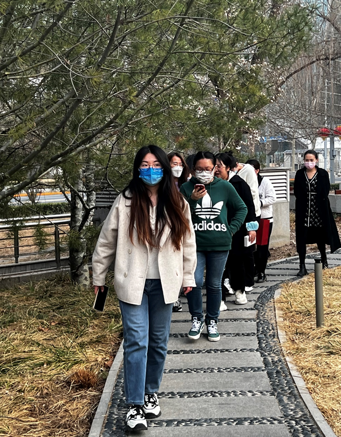 在春意盎然的景色下,參加健步走活動(dòng)的員工們感受著春風(fēng)的氣息和溫度,大家伸展手臂活動(dòng)身體,享受著春天的美好,盡情地親近大自然。從天創(chuàng)東門進(jìn)入中關(guān)村廣場(chǎng)公園西側(cè)小花園漫步一圈下來(lái)大約15分鐘的路程,不僅活動(dòng)了身體,更愉悅了身心。