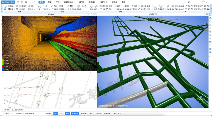 綜上所述,龍軟科技GHJS12礦用本安型三維激光掃描儀和云GIS融合數(shù)字化巷道建模技術(shù),為煤礦井工巷道工程測(cè)量、數(shù)字化動(dòng)態(tài)建模、數(shù)據(jù)分析及應(yīng)用提供整體解決方案;為煤礦智能化地質(zhì)保障和采掘應(yīng)用提供一體化工具和技術(shù)服務(wù)。