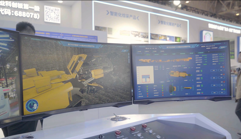 在展會現場進行公司技術驗證基地(河北燕郊)綜采工作面的遠程管控