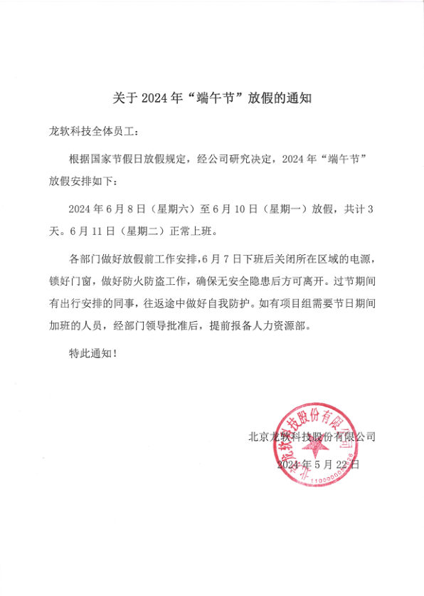 關(guān)于2024年“端午節(jié)”放假的通知