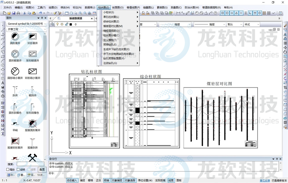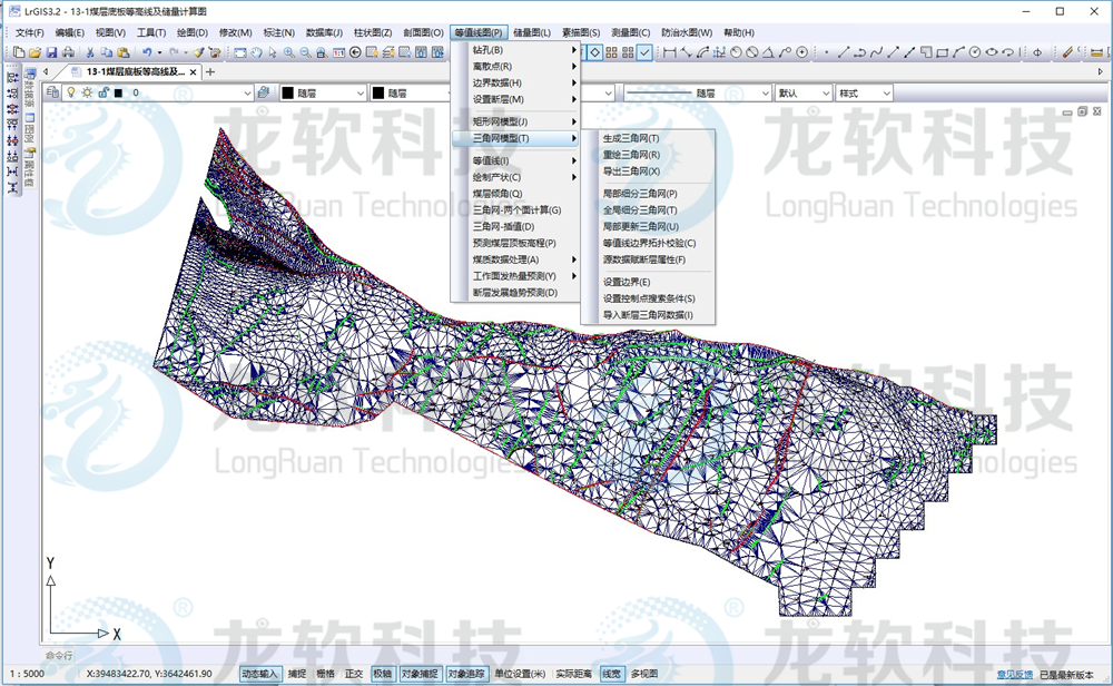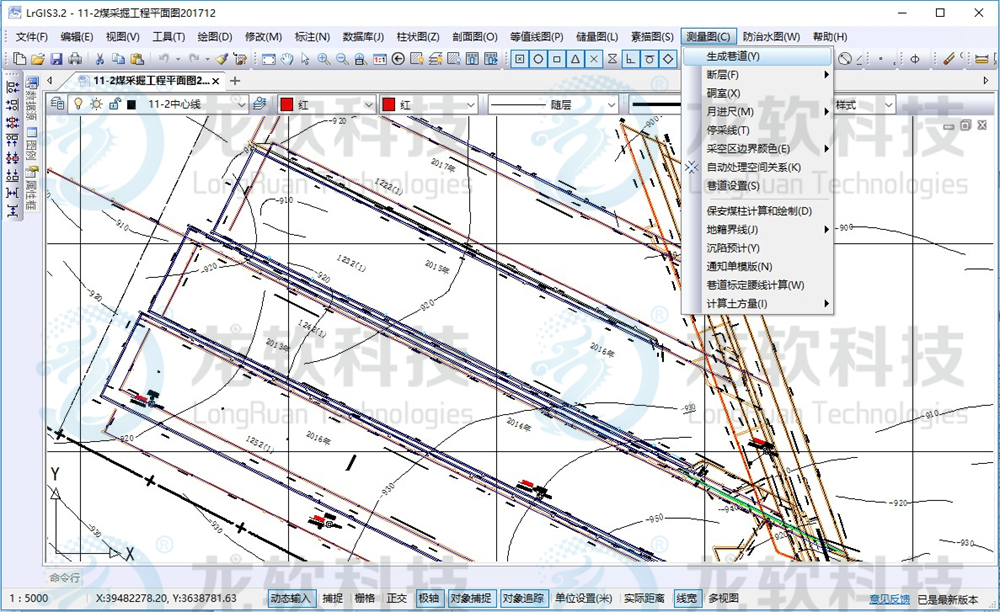 地測圖形協(xié)同管理系統(tǒng)主要包括地測數(shù)據(jù)庫管理、等值線圖、測量圖、儲量圖、柱狀圖、剖面圖、素描圖、防治水圖、瓦斯地質(zhì)圖等模塊。該系統(tǒng)以先進(jìn)的算法、精準(zhǔn)的空間數(shù)據(jù)信息處理、高效的圖形處理流程,實現(xiàn)等值線圖、采掘工程平面圖、鉆孔柱狀圖、綜合柱狀圖、煤巖層對比圖、勘探線剖面圖、預(yù)想剖面圖、底板等高線及儲量估算圖、巷道素描圖等地測圖件的繪制與管理,是礦井相關(guān)專業(yè)制圖的基礎(chǔ)。