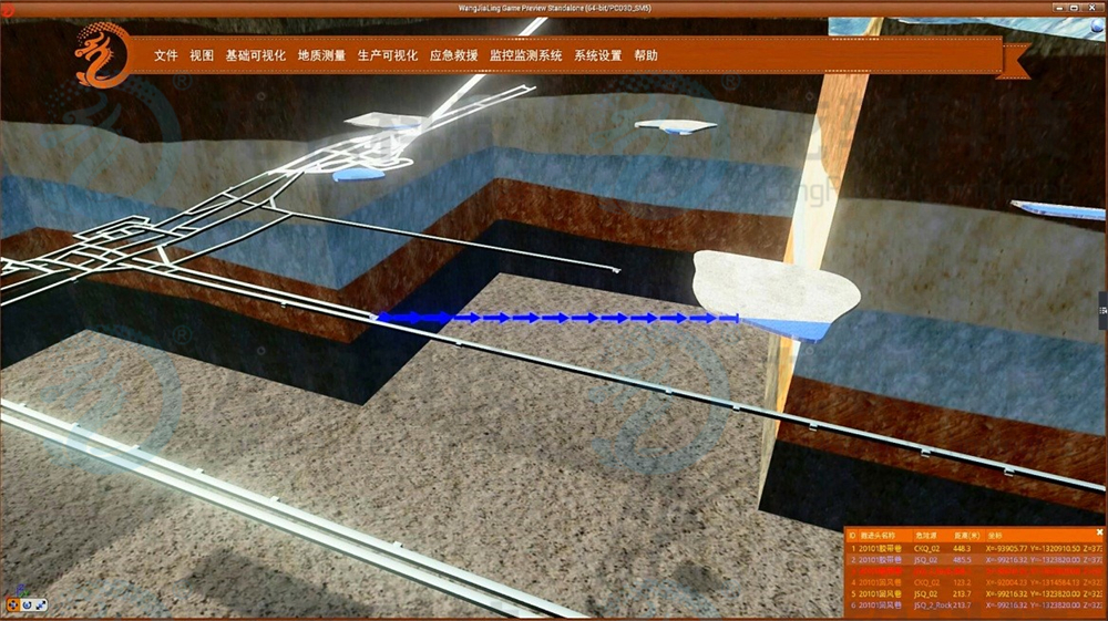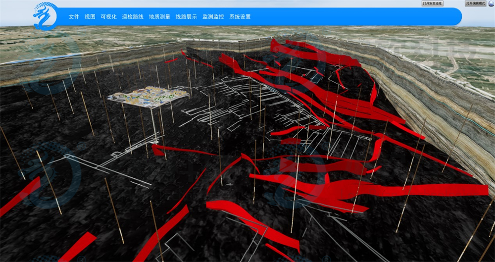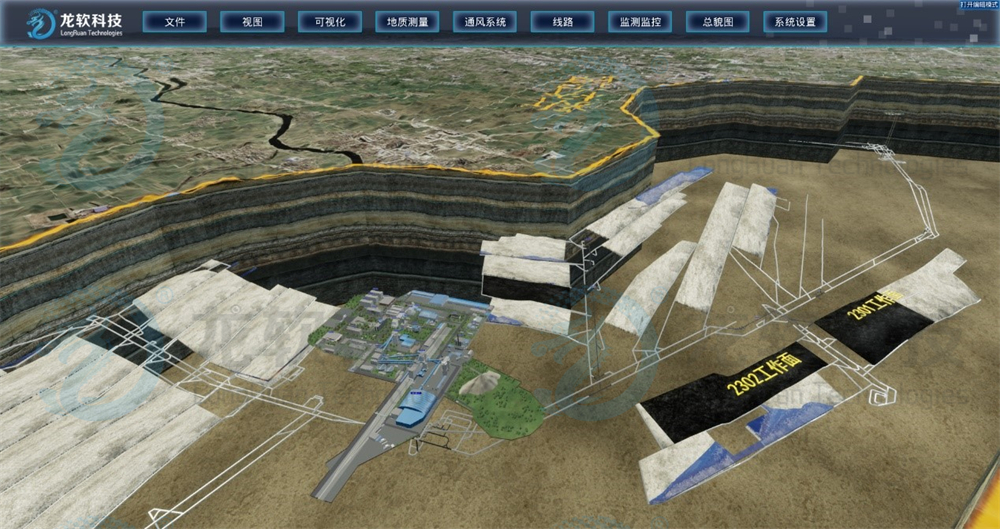 ( 6)地質(zhì)大數(shù)據(jù)分析與隱蔽致災(zāi)預(yù)警報(bào)警分析和預(yù)警平臺(tái)。基于龍軟云平臺(tái),對(duì)煤礦地層、構(gòu)造、煤層、煤質(zhì)、瓦斯、水文和其它地質(zhì)條件、地質(zhì)特征及其變化規(guī)律進(jìn)行可視化智能分析,實(shí)現(xiàn)隱蔽致災(zāi)因素(水害、瓦斯、沖擊地壓等)的預(yù)測(cè)預(yù)報(bào),基于巷道、地層和生產(chǎn)的時(shí)空關(guān)系,進(jìn)行危險(xiǎn)源的遠(yuǎn)程可視化智能預(yù)警。